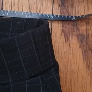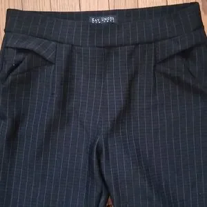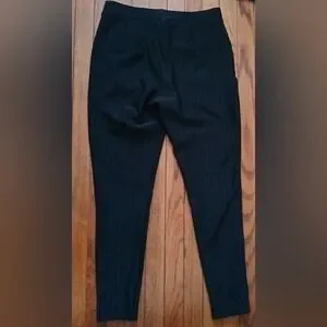 Preowned in great condition. Women's. Size Medium. Black in color with Gray stripes. Elastic/Stretch waist. Pull on style with pockets. Can be worn dressy or casual. Jegging style skinny leg.
