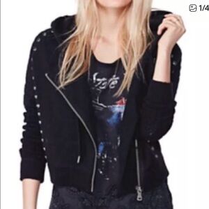 Free People Ring My Bell Moto Studded Hooded Jacket/Sweatshirt size Small