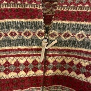 Charming cardigan with intricate patterns. Warm and stylish. Perfect for layering. 100% Shetland Wool.