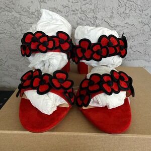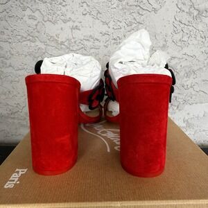 Christian Louboutin Tres Pansy 85 Suede Sandals Womens 42 Red Black Brand NEW