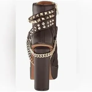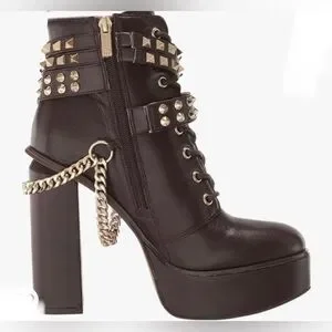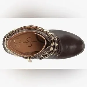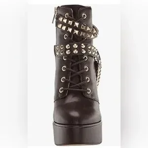 Jessica Simpson Lannoli brown lace up chain Studded Platform heeled boots size 9