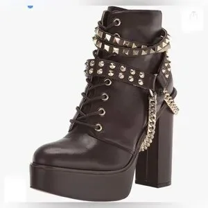 Jessica Simpson Women's Lannoli brown lace up chained Studded Combat stacked heel Platform ankle boots size 9/40 new