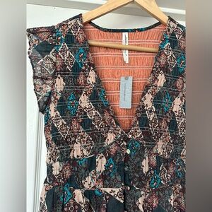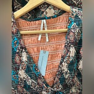 ANTHROPOLOGIE Peregrine Smocked Floral Midi Smocked Dress size Medium Petite