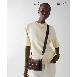 Kate Spade Cbody Duo Suede Studs Hot Fudge Brown Leather Crossbody Bag KM541