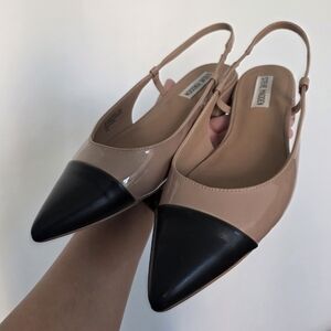 Chic pointed toe design. Stylish black and tan combination. Perfect for versatile wear. Have some scuffs as shown in pictures. Feel free to send me an offer! 😊