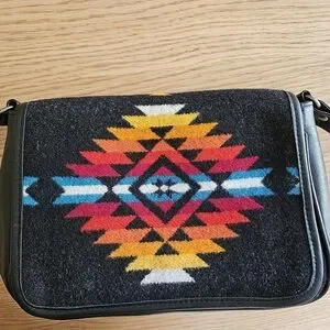 Pendleton Wool Southwestern Crossbody Bag Black Leather Aztec Boho