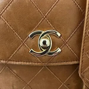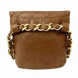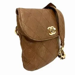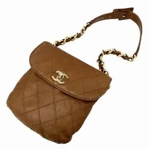 Magnificent vintage CHANEL bag. It's crafted from supple brown lambskin leather with quilted stitching. The hardware is gold-plated. The interior is lined in brown leather and features a zipped pocket. This small bag is mounted on a vintage Chanel belt. It's a beautiful, gold Chanel belt; the gold-tone metal chain interwoven with brown leather is recognizable from bags of the 1990s. It can be worn over the shoulder. Approximately W17×H18×D2 cm. Belt 75cm.