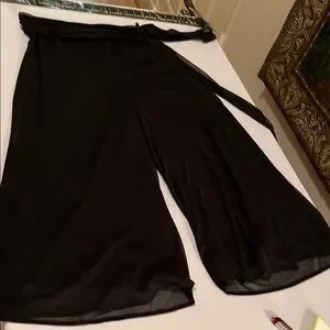 Connected Apparel large dressy Black Sheer cropped wide leg pants with belt