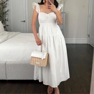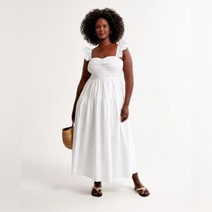 Abercrombie and Fitch White Ruffle Strap Smocked Poplin Midi Dress Costal Beachy