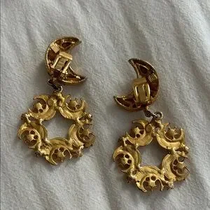 Vintage Gold Crescent Moon Clip on Earrings