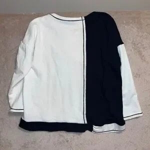 Ozai N Ku Womens Colorblock Graphic Sweatshirt Black White Mixed Media Size L