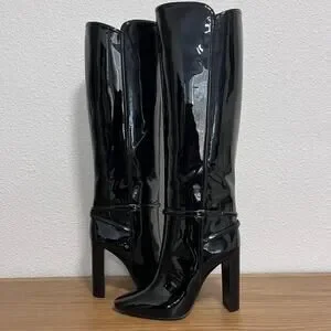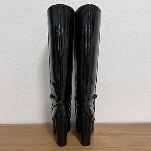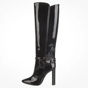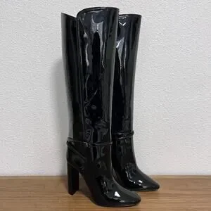 Saint Laurent Tall Knee-High Black Patent Leather Boots 40