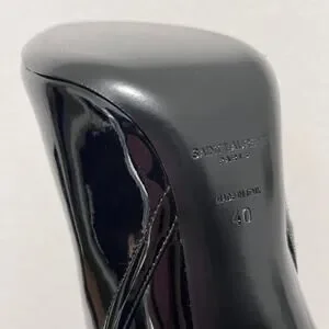 Retro-glamorous and striking, the Saint Laurent Knee-High Boots in black patent leather channel 1970s sophistication with a modern twist. They feature a pointed toe, slender ankle strap, and high block heel, crafted in Italy for impeccable quality. Perfect with shorts or cropped hemlines, these boots elongate the silhouette while delivering bold, statement-making style.