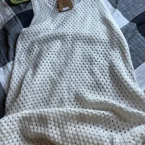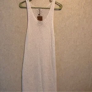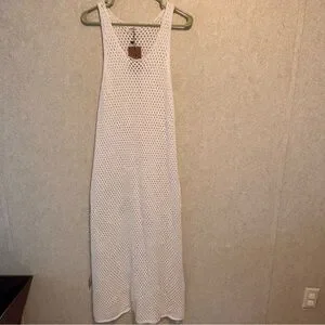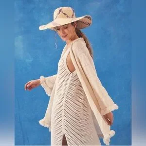 Stay stylish by the water with this elegant cream knit swim cover-up. Perfect for adding a touch of sophistication to your beachwear.