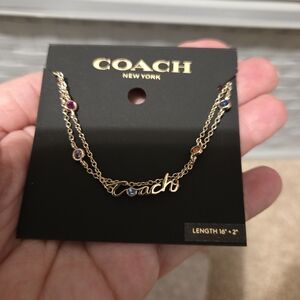 Elegant Coach bracelet in gold with colorful jewel accents. Perfect for any occasion.
