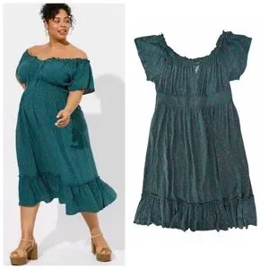 Torrid Green Floral Challis Off The Shoulder Midi Dress Size 4X Spring Pockets