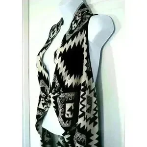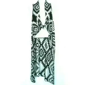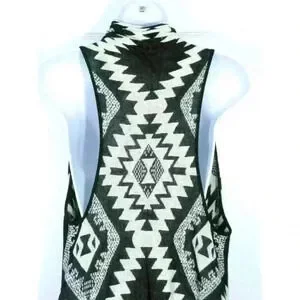 Timing duster open cardigan vest Small / Medium tribal festival black beige
