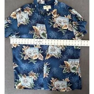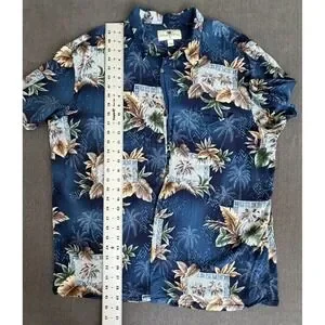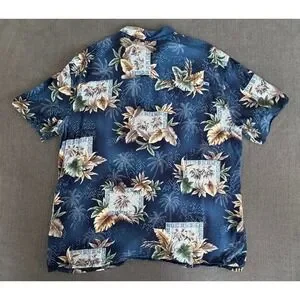 Island Shores Mens XL Blue Tropical Palm Tree Rayon Hawaiian Button Down Shirt