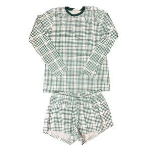 LAKE Pima Long-Short Weekend Set Juniper Plaid Green White XS Pajamas Loungewear