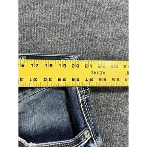 Material and construction: 100% cotton denim fabric with contrast stitching, belt loops, reinforced seams, and a zip fly with metal button closure.