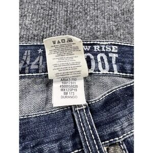 Features: Low rise waist, relaxed seat and thigh, bootcut leg opening designed to fit comfortably over cowboy or work boots, and durable denim suitable for everyday wear.