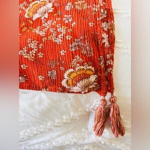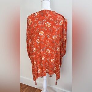 Boho Floral Kimono Cardigan | Burnt Orange | Tassel Hem | XS/S