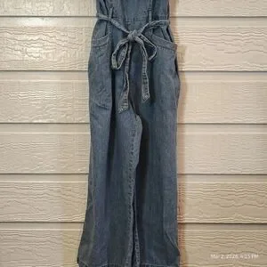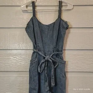 Light Denim Chambray Jumpsuit Knotted Strap Belt Women Medium 100% Cotton