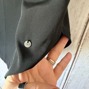 Sleek black blouse with a sleeveless design. Perfect for versatile styling.