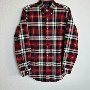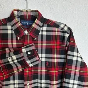 Vintage 90s Ralph Lauren Mens S Classic Fit Plaid Button Down Shirt Red PONY