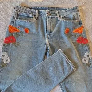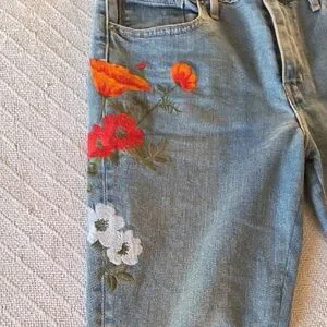 #Levis #EmbroideredDenim #PoppyPrint #FloralJeans #BohoChic #StatementPiece #RareLevis #ArtisanDenim #FestivalFashion #Size29