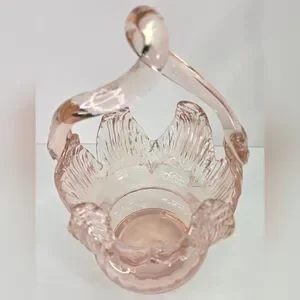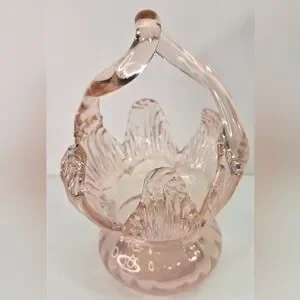Vintage Art Glass Bonbonniere Basket Dish Pink Cloud 7" Tall