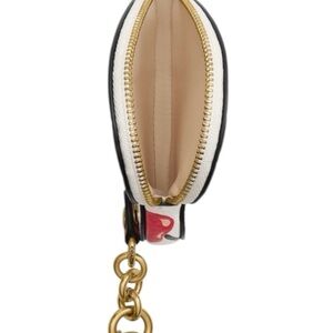 COACH- Charming heart-shaped design with vibrant cherry print coin purse. Secure your essentials with style. Can be used as a bag charm. Chalk leather with embossed Cherry design. NWT All Inclusion.
