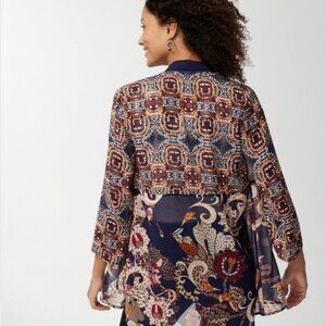 Chico's Mixed Soiree Tile Long Jacket open front kimono semi sheer size L