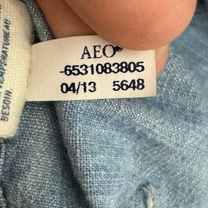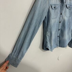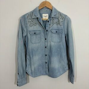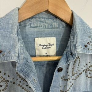 American Eagle Western Chambray Shirt Womens S Light Wash Blue Studded Boho VGUC