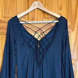 Free People Black Long Sleeve Dress with Lattice Back