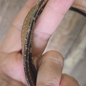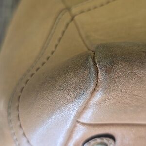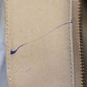 Leather is overall in good condition and buttery soft. It needs a good conditioning. Interior is good!!! There is an ink mark on the zipper, as pictured. For a vintage model, she's in good condition!