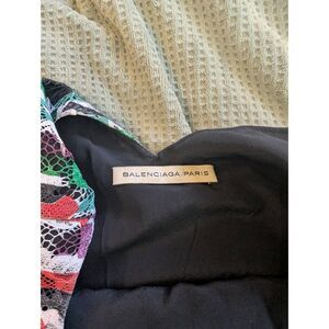 Balenciaga Multicolor Lace Shift Dress Geometric Pattern Silk Slip Size 8-10 M