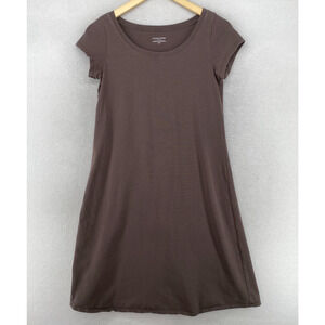EILEEN FISHER Dress PS Stretch Organic Cotton Jersey T-Shirt Cap Sleeve Brown