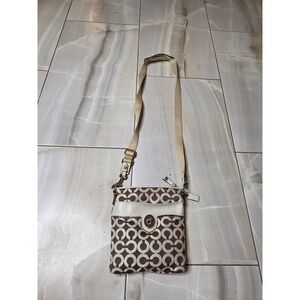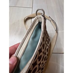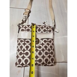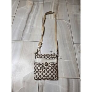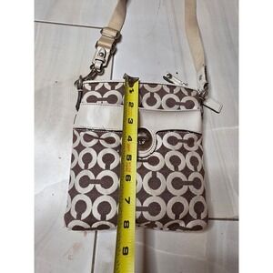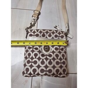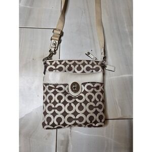 Coach Signature C Monogram Crossbody Bag Brown White Leather Trim Turnlock