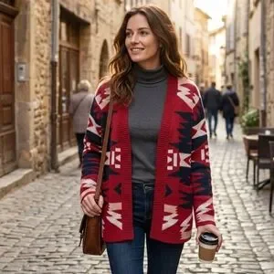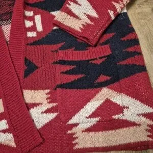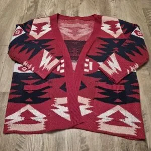 Women's Red Southwestern Cabincore Knit Cardigan Size 3XL