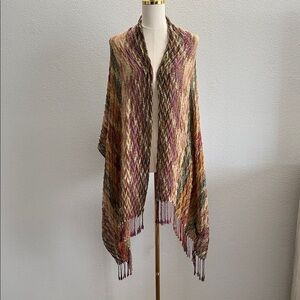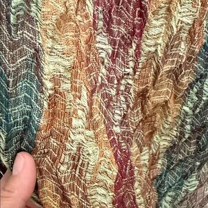 Beautiful 100% Pashmina shawl in a rich multicolor woven pattern. Features a chevron-style texture with earthy tones of burgundy, olive, mustard, and plum, finished with fringe trim. Soft, lightweight, and versatile — perfect as a cozy wrap, evening cover-up, or statement scarf. A timeless accessory that adds elegance to any outfit.
