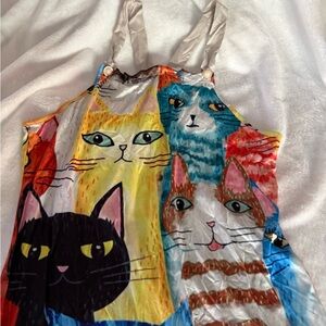 Colorful Cat Print Harem Style Jumpsuit Adj Straps XS/S