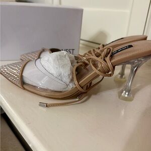 Stylish tan heels with silver studded accents. Perfect for a night out.New with box!