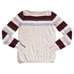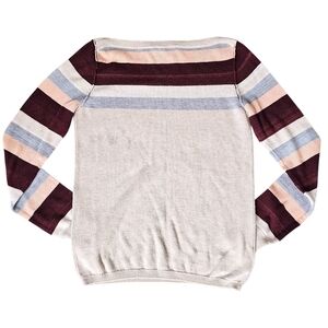 Check out this stunning BCBGeneration color block boat neck sweater! This striped multicolor top is absolutely beautiful and hard to come by. This piece is super soft, lightweight, and cozy making it perfect for casual wear during those chilly fall or spring days!