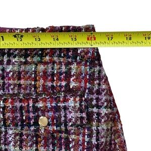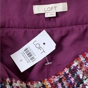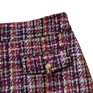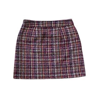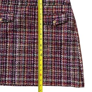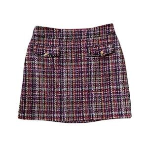 LOFT Classic Burgundy Multicolor Tweed Mini Skirt Size 8 NWT Gold Button