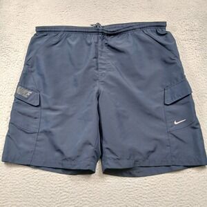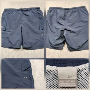 Nike Mesh Lined Cargo Swim Trunks Men's XXL Navy Blue Side Swoosh EUC