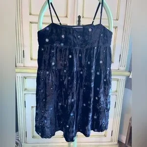 Alice velvet embroidered babydoll dress. Chic midnight navy blue velvet dress with delicate embroidered floral accents. Boho inspired
