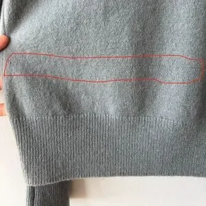 indentation in the knit near the bottom hem (please see the last photos for a close-up). It is cosmetic and does not affect the integrity or the luxurious feel of the cashmere. Priced accordingly for this minor flaw!✨