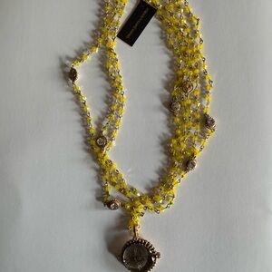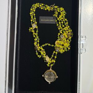 VIRGINS SAINTS ANGELS VSA MAGDALENA CHARTREUSE CRYSTAL NECKLACE ZIA MEDALLION GOLD ROSARY NECKLACE STATEMENT JEWELRY DESIGNER BOHO LUXE