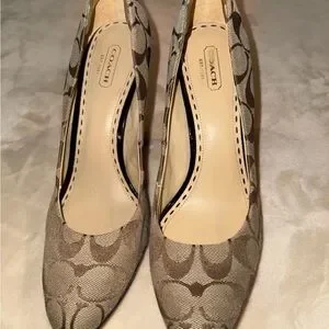 Coach Women’s Signature Brown Fabric Heels- Size 9.5 B
